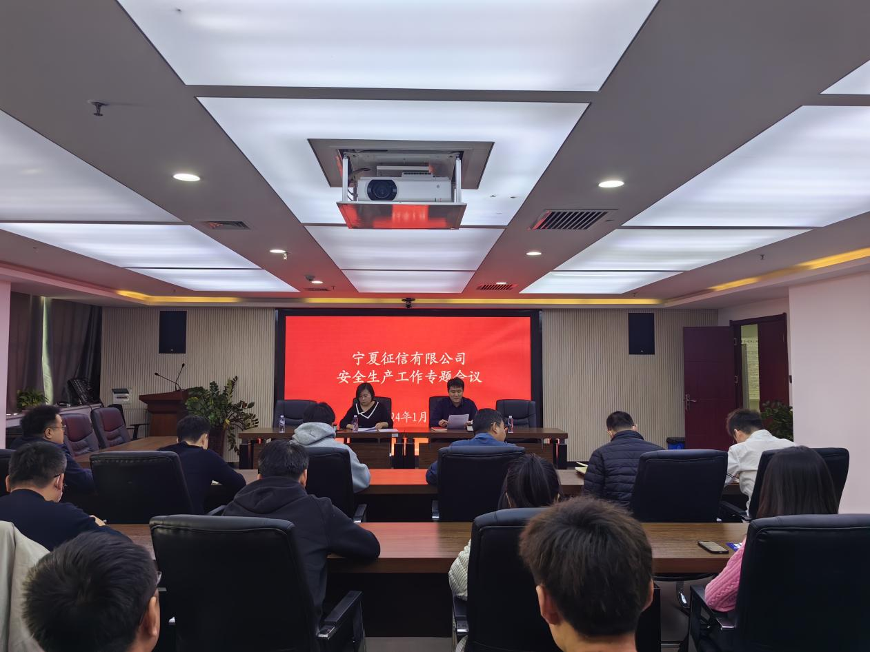 1月26日,宁夏征信有限公司组织召开安全生产工作专题会议,组织集体学习习近平总书记对云南昭通市镇雄县山体滑坡作出的重要指示精神,习近平总书记对江西新余市渝水区一临街店铺火灾事故作出重要指示精神,自治区安委会和自治区国资委关于安全相关会议精神和工作要求,对公司安全生产和春节前有关工作进行再强调、再检查、再部署。